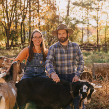 First-generation dairy farmers, Maria and Matt started their farm in 2018 and shifted towards this farmstead dairy, Gorgeous Goat Creamery, in Summer 2020. They make all dairy products right on the farm each week, with goat’s milk from their herd of Alpine dairy goats. Their mission is to increase community awareness and appreciation for local animal agriculture through the sale of sustainable, artisan goat dairy products.