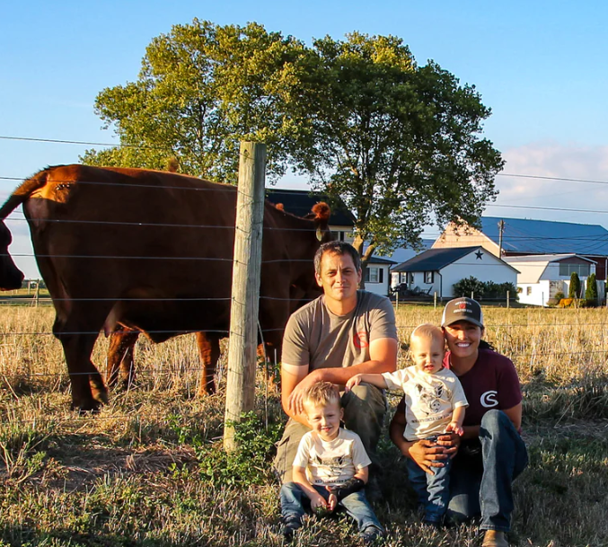 Lucas & Elise Haring are 4th generations farmers raising pasture-raised & non G.M.O soy free livestock. Previously a dairy and crop farm, they now raise animals in the lush grass and sunshine while working to regenerate the land. From birth to harvest they have full control of the health of their animals and knowledge about everything that goes into the food they produce for their community.